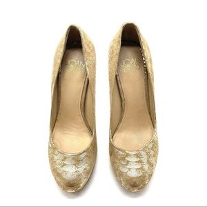Joan & David Mob Wife “Flipp” Gold Python Pattern, Platform Stiletto Size 4.5