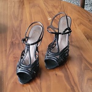 Joan David Patent Leather Strappy Peep Toe Y2k Stiletto Heel Sandal Retro 6.5