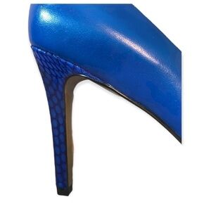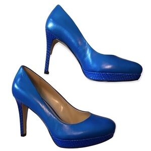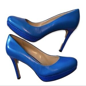 Joan & David Snakeskin Accented Blue Leather Platform Pump
