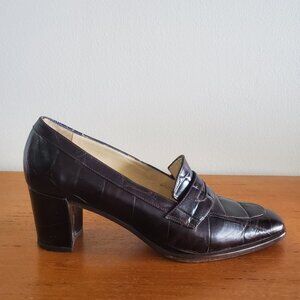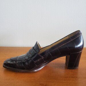 Joan & David W 7.5 Italy handmade Burgundy Croc Leather Heeled Penny loafer A213