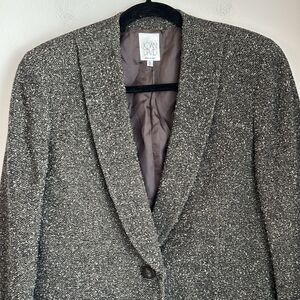 Elegant tweed blazer by Joan & David. Features a classic single-button closure. Perfect for formal occasions. Made in Italy. Light shoulder pads