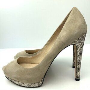 Joan & David womens heels size 9 Dadelsa4 beige suede leather snakeskin print platforms