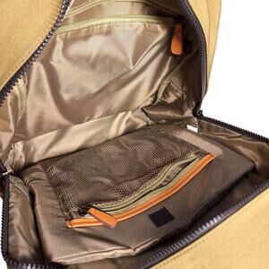 In very good pre owned condition from Joan and David unisex olive green backpack nylon durable fabric travel size backpack with laptop padded pocket and tons of pockets 15" Tall 16" wide laying flat