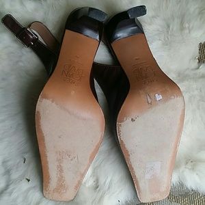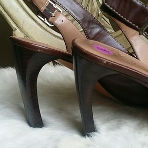 J&D brown leather sling back high heel shoes. Very versatile. Very cute. Gently used, with a few nicks as shown on last picture, but overall in great condition.