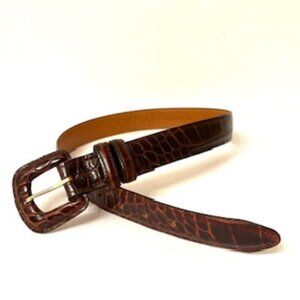 Joan & David u.s.a Women Brown Calfskin Embossed Croc Pattern Leather Belt