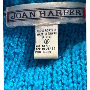 Joan Harper vintage chunky nubby blue button down cardigan sweater pockets sz S