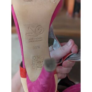 Joan Oloff Women's 38.5 US 8.5 Pink Red Peep Open Toe Pumps Heels Leather Italy