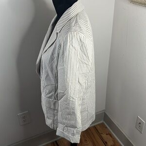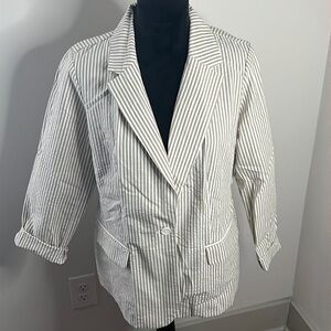 Joan Rivers 100% Cotton khaki white stripes summer blazer light sport jacket 10
