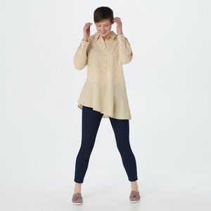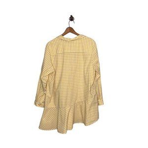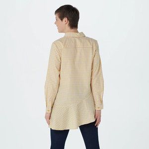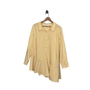 Joan Rivers 20W Yellow Plaid Check Cotton Asymmetrical Hem Button Tunic Plus 1X