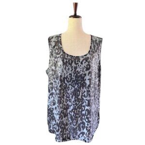 Joan Rivers Black and Grey Animal Print Tank Top Cami Sequin Front Plus 2X NWT