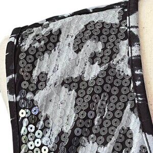 Black and Grey animal print tank top with clear sequins throughout the front portion of the tank.