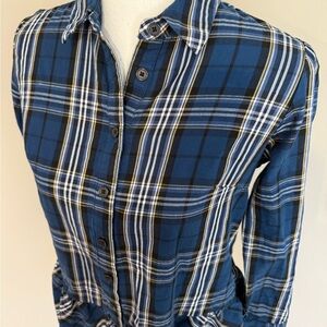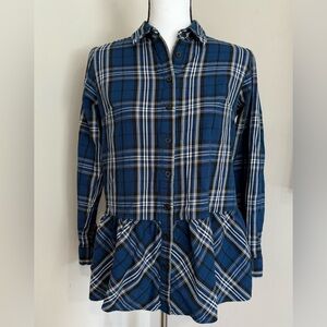 Joan Rivers Blue Plaid Long Sleeve with ruffled hem