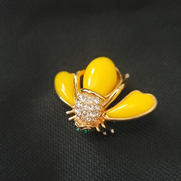 Signed Joan Rivers Yellow Lucite Bee With Rhinestones.