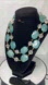 This stunning necklace set features vibrant turquoise blue resin stones wrapped in gold accents, complemented by clear crystal beads.