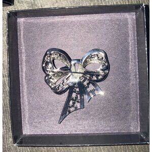 This elegant bow-shaped brooch from the Joan Rivers Classics Collection features sparkling rhinestones set in a silver-tone finish. It adds sophistication and charm to any attire and comes presented in its original gift box. A timeless and versatile accessory for refined style.