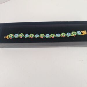 Joan Rivers Classics Collection Flower Enamel Rhinestones Bracelet Signed