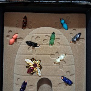 *REASONABLE OFFERS ACCEPTED* This is from Joan Rivers Classics Collection. It's the Interchangeable Bee Pin J62857. Choose from 10 beautiful colors. The simulated jewel tones are Amethyst, Ruby and Smoky Topaz. The simulated semi-precious colors are Lapis, Coral, Jet, Turquoise and Jade. And last the simulated pearls are Cream and Gray. Instructions included on how to change the colors. Comes in the original box but the box is pretty worn on the edges both top and bottom.
