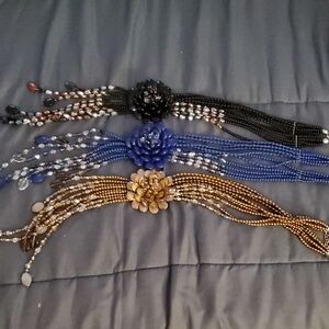 If you get all 3 for a bargain. If you purchase individually the price os $75.00. This stunning necklace set features intricate beading in black, blue, and netural tones, perfect for adding a touch of elegance to any outfit. This necklacs is new, never been worn, great for any occasion.
