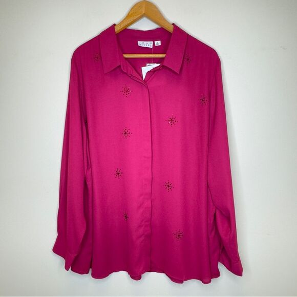 Joan Rivers Crystal Burst Button Down Long Sleeve Top - Size 3X