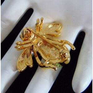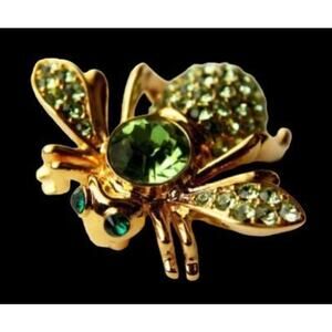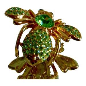 Joan Rivers Crystal Green Peridot BIRTHSTONE BEE BROOCH Gold Pin August Birthday