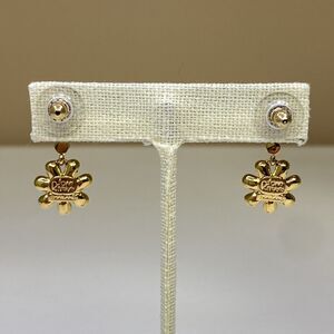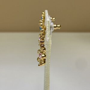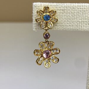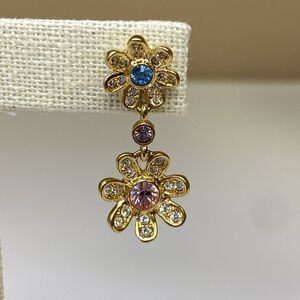 Joan Rivers Double Rhinestone Flower Dangle Pierced Earrings Pink Blue Gold Tone