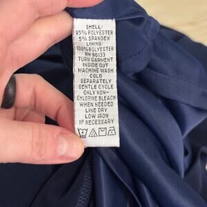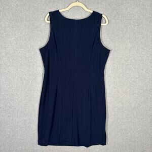 Joan Rivers Dress XL Navy Knee Knit Slinky Stretch Capsule Stretch Lined Blue A Line Slit Classic Short Mini Preppy Nautical