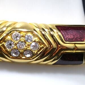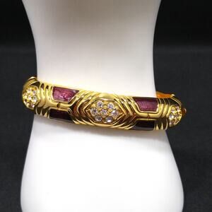Joan Rivers Gold Plated Red Enamel Rhinestone Hinged Bracelet Vintage Jewelry