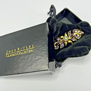 Joan Rivers Gold Tone Swarovski Crystals Enamel Navy Blue Flowers Brooch Pin