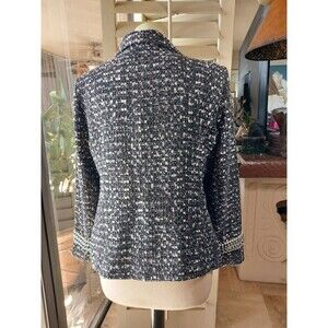 Joan Rivers Gray Black Tweed Blazer Sequin Pearl Detail Trim on sleeve Size 12