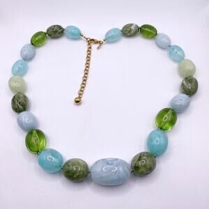Joan Rivers Green Tones Lucite Chunky Necklace 26” Glows On Dark Light