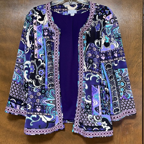 Such a nice jacket extra large in size and multi colored to easily wear with Jeans or white slacks or blue!