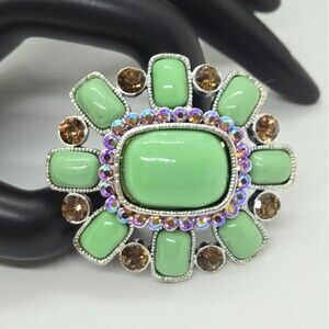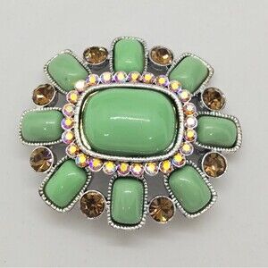 Joan Rivers Jade Green and Amber Tone AB Stone Brooch Pin Silver-tone