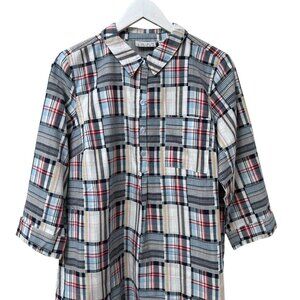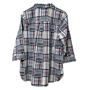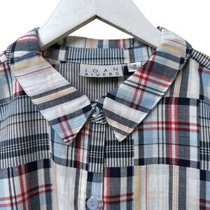 Joan Rivers Madras Shirt Size Medium Blue Plaid Womens Top Preppy Patchwork QVC