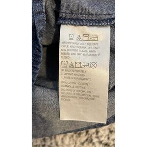 Joan Rivers Medium Blue Denim Embroidered Button Top Floral Boho Cottage Fairy