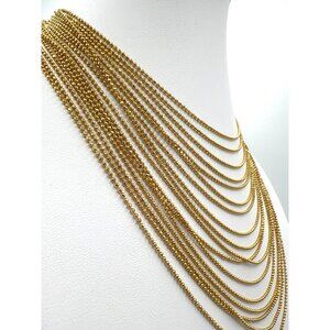 This stunning multi-strand necklace features a lavish array of gold-tone tiny beads that glisten with every movement.. Its versatile design complements both casual and formal attire.