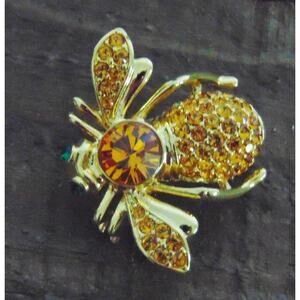Joan Rivers Pave Crystal Gold Citrine BEE BROOCH November Birthday Birthstone
