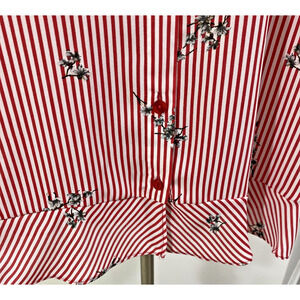 Joan Rivers Red & White Blouse Relaxed size 6 Striped & Floral Classic Casual