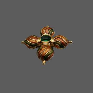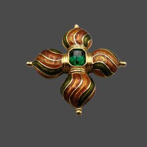 Final Price Drop. Vintage Joan Rivers Russian Style Maltese Cross Onion Dome Brooch with a Center Emerald Color Stone. It measures approx. 2 1/4 inches. This gold-plated brooch is gorgeous and in great shape. The colors are striking. Please view all photos for details. This would be a wonderful addition to your jewelry collection.