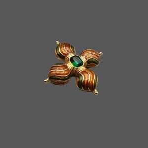 Joan Rivers Russian Onion Dome Maltese Cross Brooch w/ Center Emerald Stone VTG