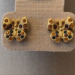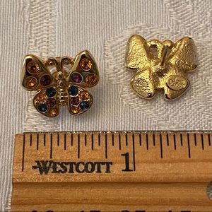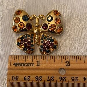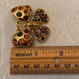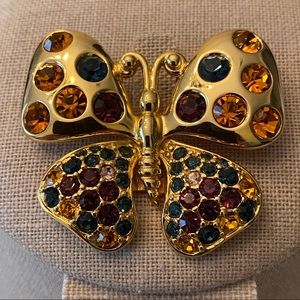 Signed Retired Joan Rivers Multi-colored Crystal Butterfly Brooch and Earring Set