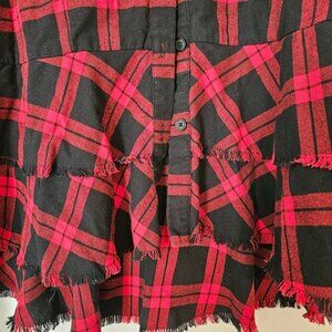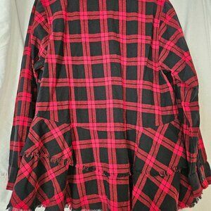 Joan Rivers Shirt Womens 16 Red/Black Plaid Peplum Fringe Hem Flannel