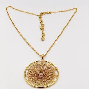 Joan Rivers Statement Necklace Gold Tone Filigree Mandala Sunburst Pendant