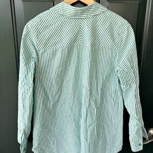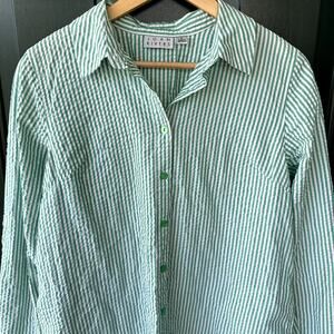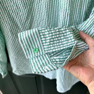 Joan Rivers Sz S Green & White Seersucker Button Front Shirt Shacket Preppy QVC