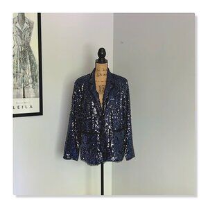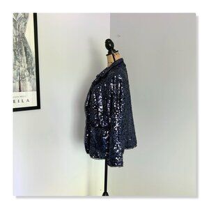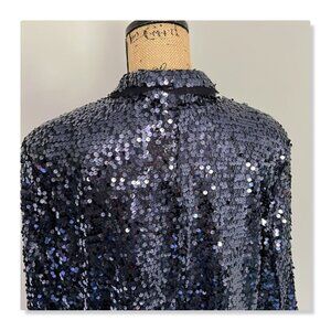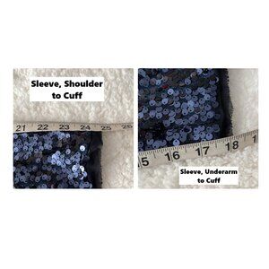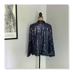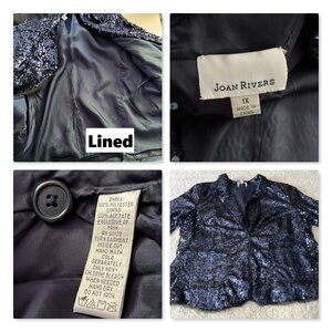 Joan Rivers Touch of Sparkle Sequin Blazer Midnight Blue Sz 1X. EUC, no damage. Measurements provided in photos.