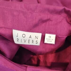 Joan Rivers Shirt Womens 1X Purple Button Up Long Sleeve w/ Pockets Satin Blouse (21254)