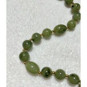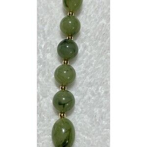 Joan Rivers VTG NECKLACE SEMI PRECIOUS Green Jasper POLISHED STONE 12mm 30in