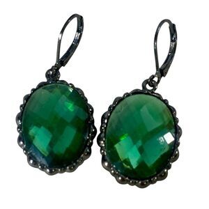 Joan Rivers Vintage Earrings Gunmetal Tone Green Brown Faceted Oval Shape 2 Pair
