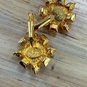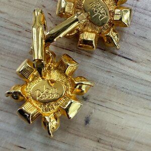 These elegant Joan Rivers vintage earrings feature gold-plated designs adorned with faux pearls and pink crystals, offering timeless sophistication for refined styles.
