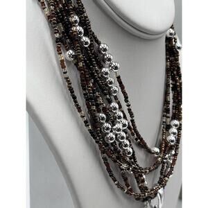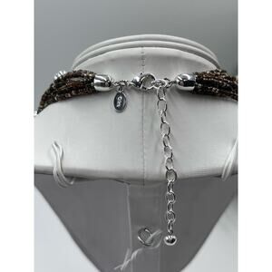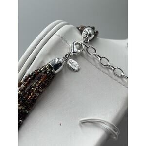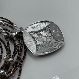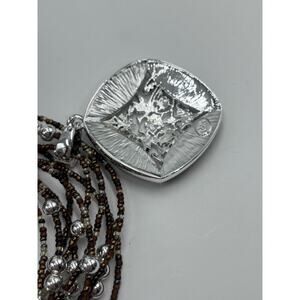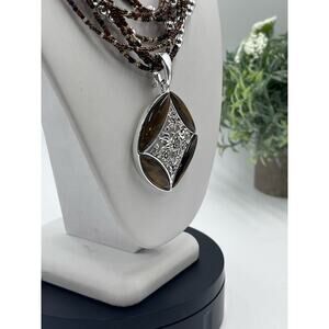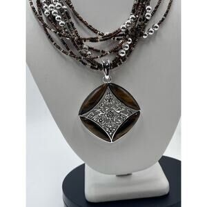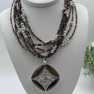 Tigers Eye Bird Call Pendant & 10 Strand Beaded Necklace - Sterling Silver Plated