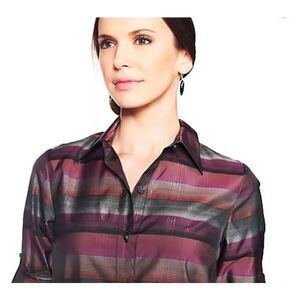 Joan Rivers Womens 3X Button Front Casual Luxury Boyfriend Plaid Shirt Red Gray NWT